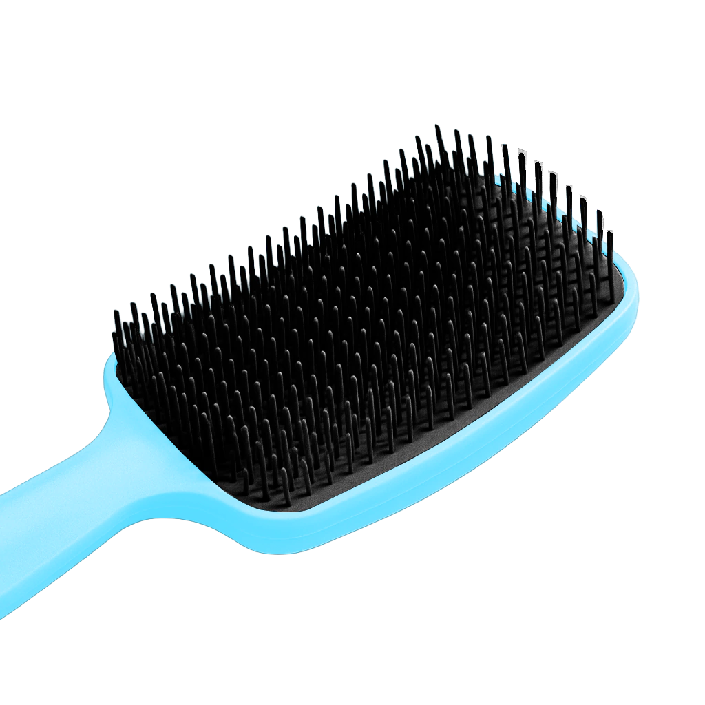 Seu formato raquete cobre uma área maior, sendo ideal para cabelos médios, longos ou volumosos, acelerando o processo de escovação e deixando os fios alinhados e livres de frizz.