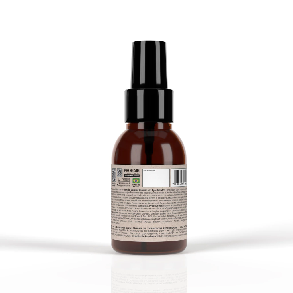 Com ativos tecnológicos como Baicapil™, Kerascalp™, Zinco PCA e Extratos Vegetais, o Tônico Capilar Classic atua diretamente no couro cabeludo para estimular o crescimento, aumentar a densidade capilar e reduzir a queda dos fios. Sua fórmula poderosa combate o enfraquecimento e a miniaturização capilar, promovendo fios mais espessos, brilhantes e resistentes. É um tratamento unissex, livre de ingredientes agressivos como sulfatos, petrolatos, silicones, glúten, parabenos e parafina.